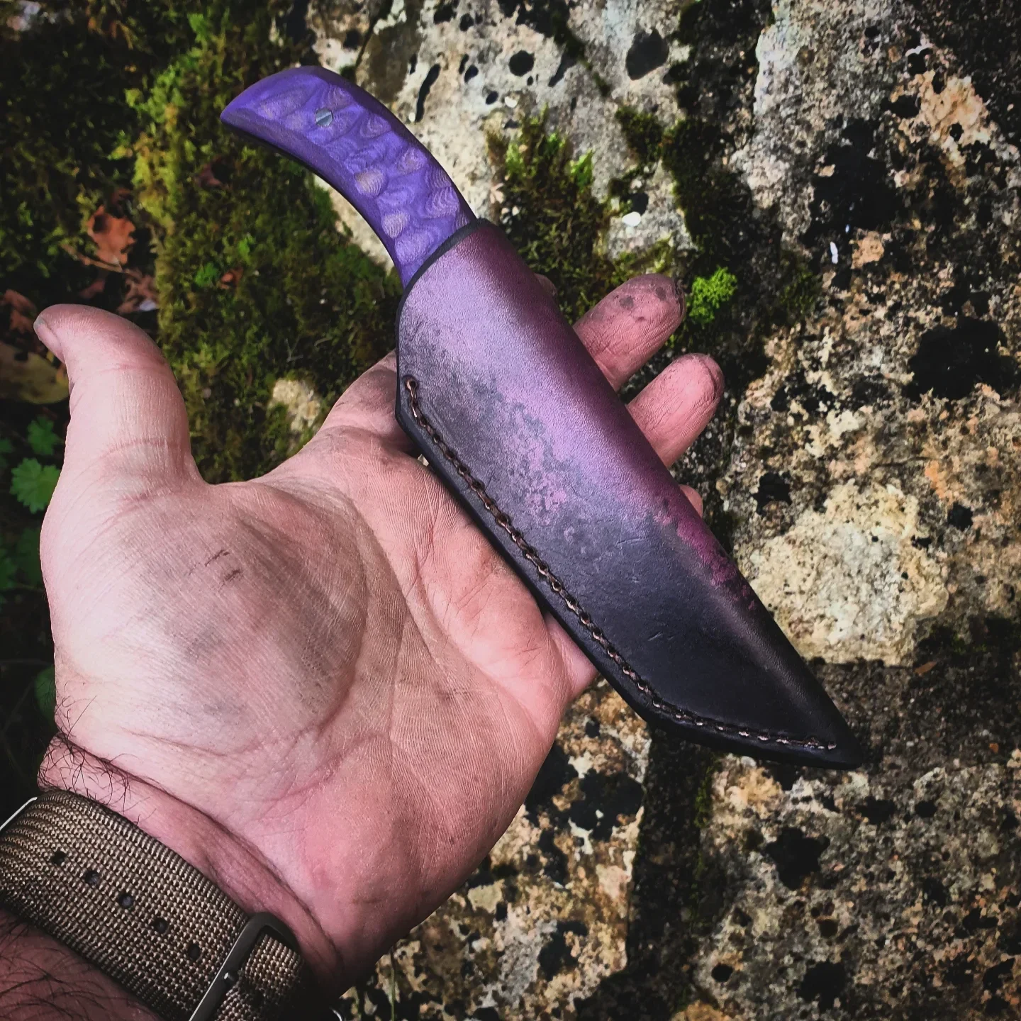 Manche en micarta violet toxifié