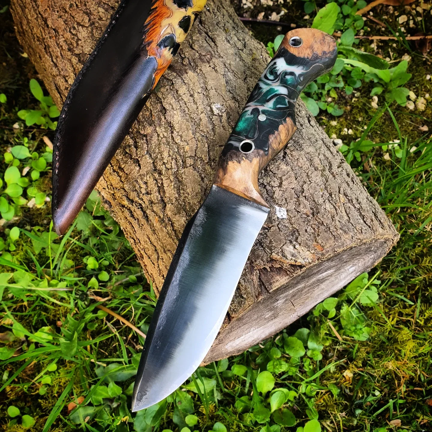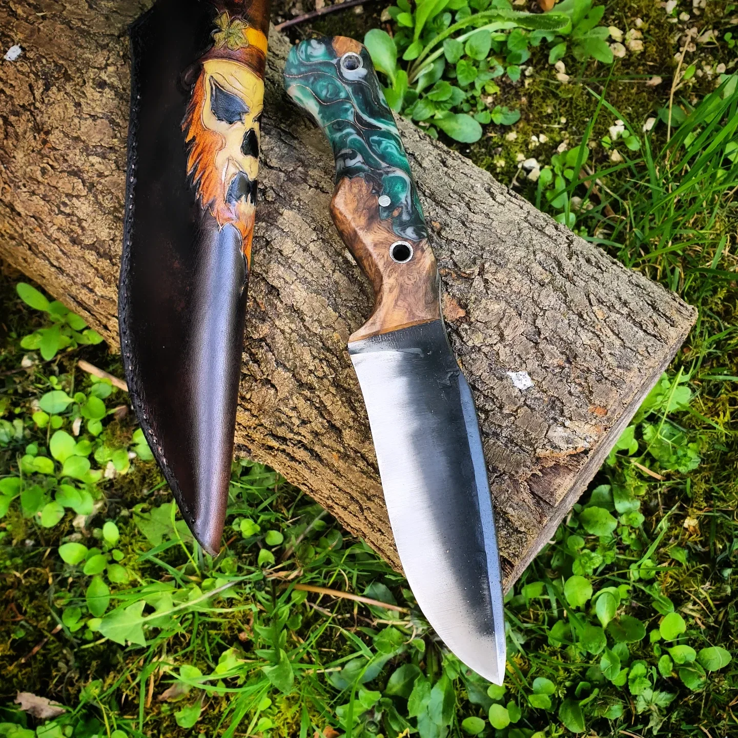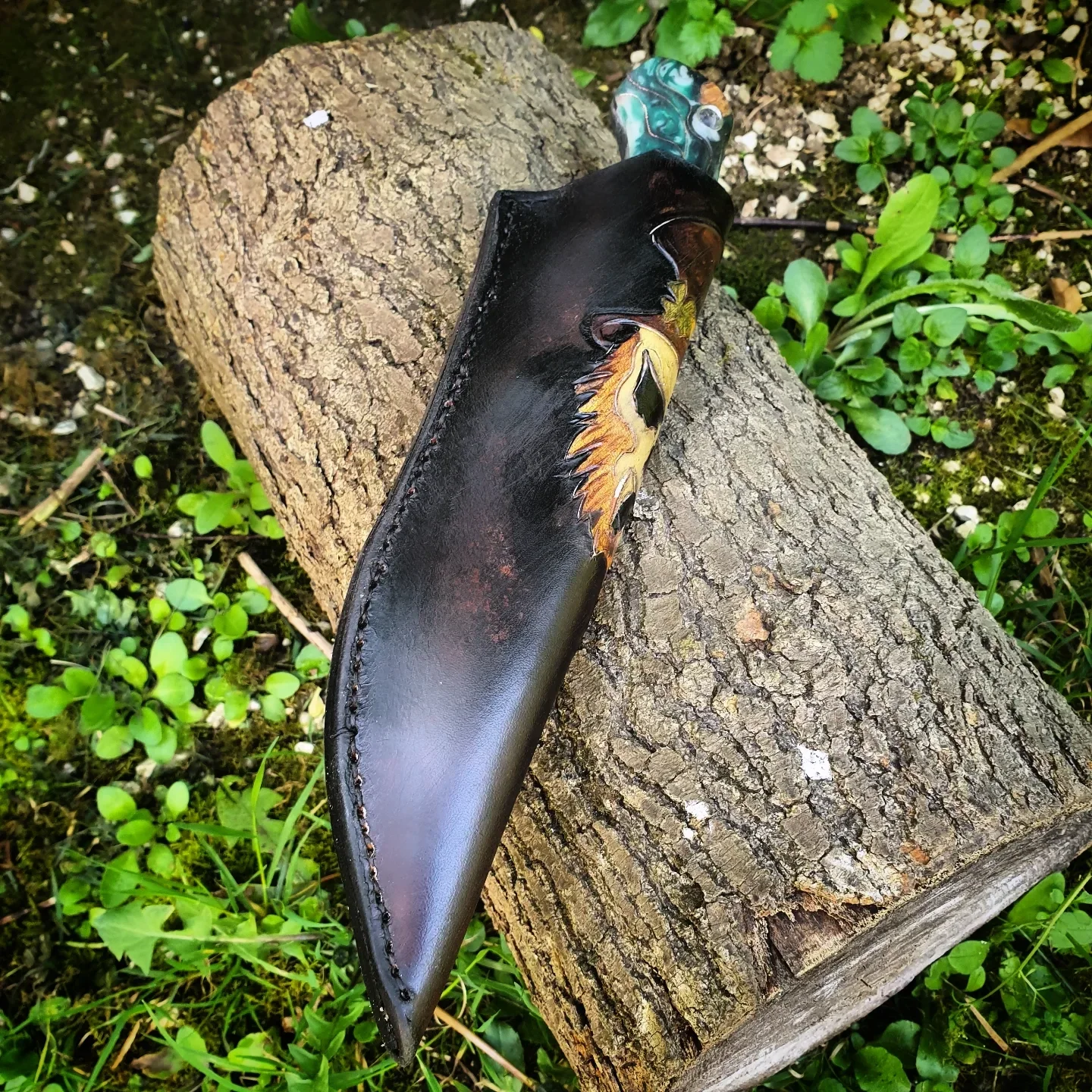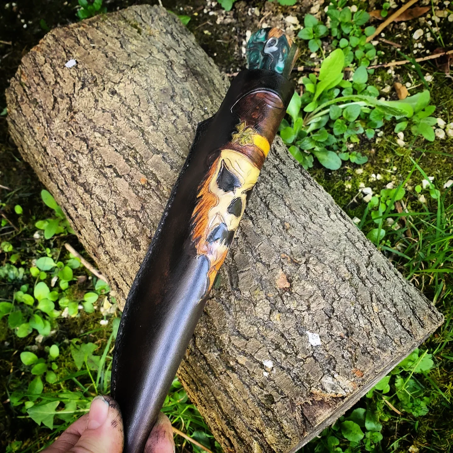 Etui cuir pleine fleur cousu main, motif Leprechaun Skull